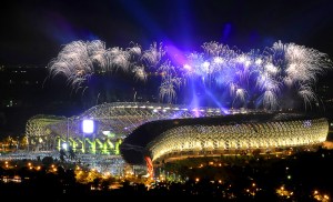 Well, Rain is safely in Taiwan (he flew in on the 28th) and is probably preparing like a madman for tomorrow night’s LoR performance at Kaohsiung Main Stadium, workaholic that he is. And what an amazing venue, more than worthy of our Bi. It is solar-paneled and holds 40-44,000 people (the China Post has claimed that 40,000 are expected for the show—I don’t know how true that number is, but we’ll see). Take a look at this beauty.