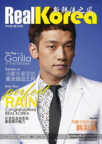 Kpop Live.com 3/2/10—It’s hard to deny the fact that Korea’s Rain is one of the most influential Asian artists out there. He is known throughout Asia and just recently debuted on Hollywood screens. Due to that, Rain will be featured on the front cover of Real Korea magazine for April.