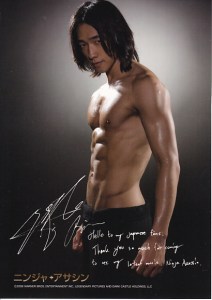 We’re used to seeing him sign things in Hangul, but not in a lot of English, so this is very cool. As we understand it, Rain signed this poster for promotional purposes in Shinjuku, Japan—Ninja Assassin opens in theaters there today. ^@@^