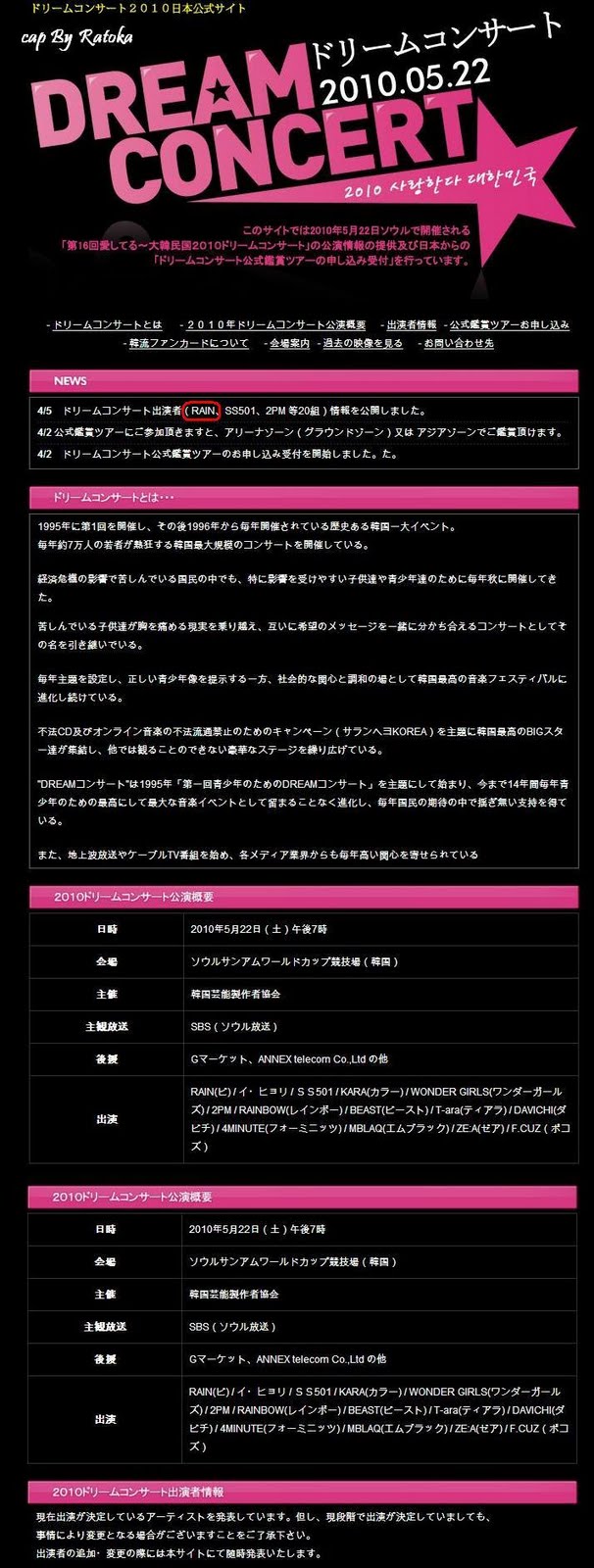 Rain and SS501 on the same billing?????? Wow! I want to be there but just dont have enough funds….oh must buy lottery ticket!!! IIf I win I am moving to Korea and bringing you all along with me!!!!