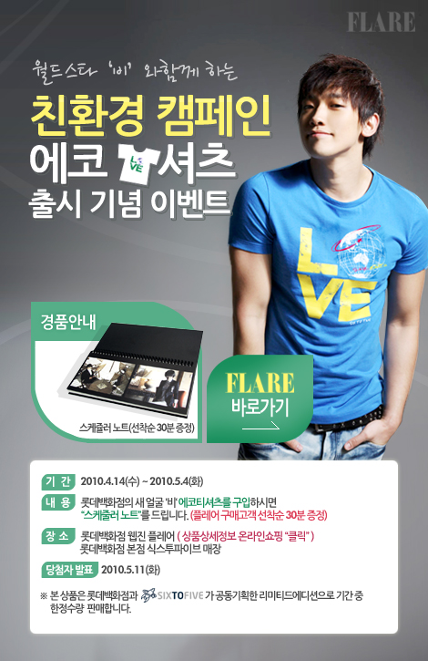 I don’t usually put Rain’s commercial graphics (ads for Lotte, Nature Republic, Six To Five, Tous le Jours, et cetera) here because, frankly, they’re in Hangeul and it makes no sense to do so when we’ve no idea what they’re for.  But these latest Lotte “Be Eco Friendly” ads are just so handsome, I simply couldn’t resist.  And here is Joon’s new Hite Beer graphic.  Mmm… my, they grow up fast. 🙂  — Stephe ^@@^