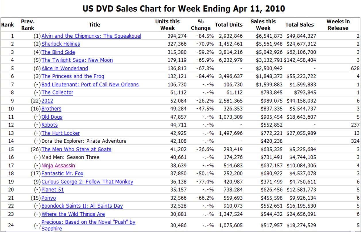 Top 10 Renting Blu-ray Titles at U.S. BLOCKBUSTER stores for the week ending April 18, 2010: