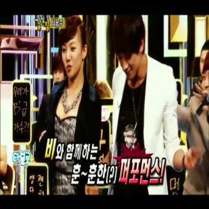 Ahhhh. So now we have at least one person to thank every time we set eyes on Rain’s golden abs. Perhaps his appearance on Strong Heart will have a positive effect on their ratings—one can only hope. Though I agree with the “too many stars on one show” opinion some of the public has, Ho-Dong is one of my favorite hosts of all time and I’d hate to see Strong Heart go down the tubes. — Stephe ^@@^