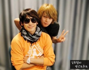 K Bites has put up a terrific pic—their Photo of the Day, showing Rain and Super Junior’s Kim Hee-Chul at a recent radio show and how, though they were born only a year apart, they look dissimilar in age. Rain looks older and Hee-Chul looks a lot younger. (Perhaps that’s because of the more mature look Rain has adopted since Legend of Rainism. “Raizo” and Hee-Chul would look more similar, I think… yes. Or “Taejo” and Hee-Chul. What do you think?)