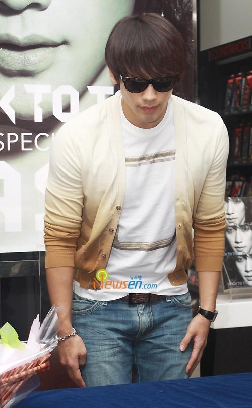 As we understand it… this is Rain’s third and final fanmeet of today, at Gangnam Kyobo HOTTRACKS, around 7 PM.  Looks rather peaceful compared to earlier, praise heaven.  Enjoy these images and quick fan cams, Clouds… and also, for an added treat, you can slip over to our Cloud USA fan site and see more of Rain’s HOTTRACK pictures on our brand new News & Events Image Gallery page, which is directly connected to our Favorite Pics page.  Have fun!