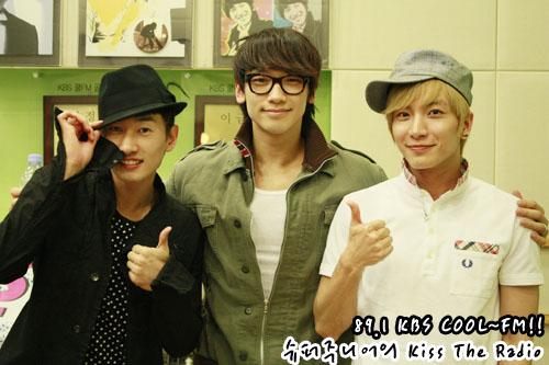 From back around the first week of the month, Rain in the studio with Eunhyuk and Leeteuk of Super Junior for a funny, ultra-casual interview. I about lost it when, instead of oppa (older brother to a female), they insisted on calling him ahdusshi (uncle, sir, pretty much the American equivalent of Pops or Old Man, but honorifically). ROFL! Oh, he was not having that at all.