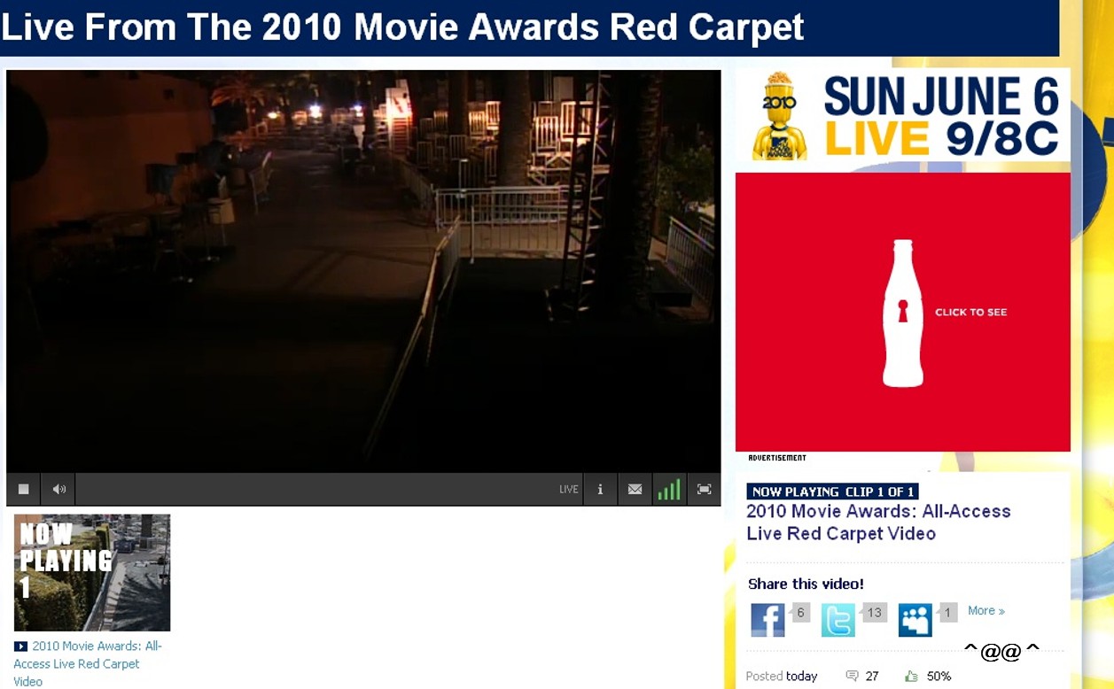 Well, well, well! Looks like the construction of the 2010 MTV Movie Awards RED CARPET at Gibson Amphitheater will be streamed live over the next two days from the MTV.com site, as well as the celebrity arrivals doing their walk-ins on Sunday night, beginning at 8 PM Eastern time and up until the show starts.
