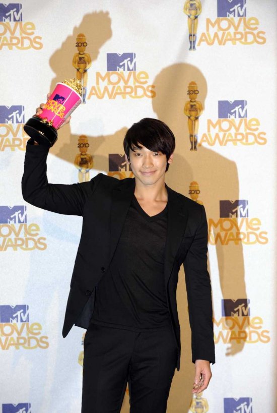 South Korean pop star Rain holds his MTV Best Badass Award for his role in ‘Ninja Assassin’ at the 2010 MTV Movie Awards at the Gibson Amphitheatre at Universal Studies in Universal City, California, USA, 06 June 2010. The movies are nominated by producers and executives from MTV and the winners are chosen on-line by the general public. EPA/MIKE NELSON