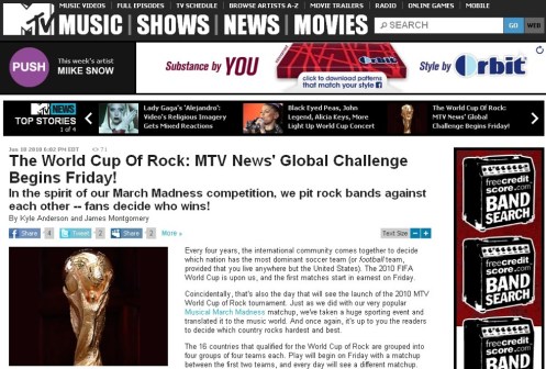 MTV Newsroom Blog 6/10/2010 — In the spirit of our March Madness competition, we pit rock bands against each other… fans decide who wins!