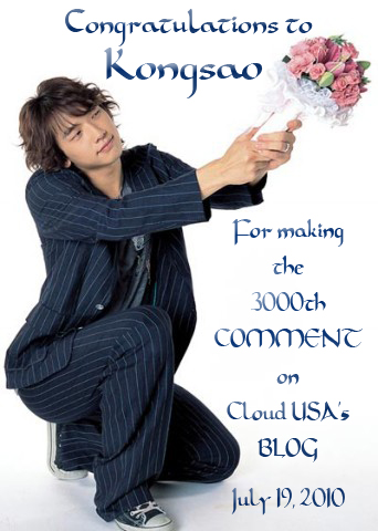 Congratulations Kongsao. I’ve seen you on other sites as well, and you don’t hesitate to express your love for Rain. U GO Girl. 😀