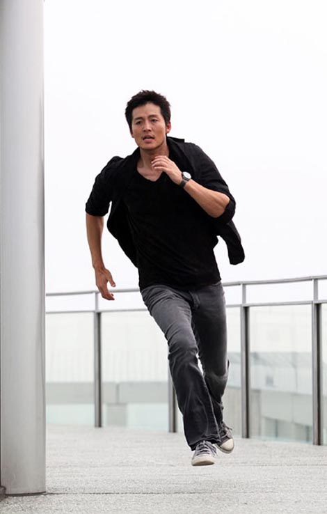 Anyway, on to the point: Lee Jung-jin in character as a detective named Do-soo. Along with a subordinate played by Yoon Jin-seo, Do-soo chases Rain and Lee Na-young on an extended pursuit that takes them through a number of Asian countries….