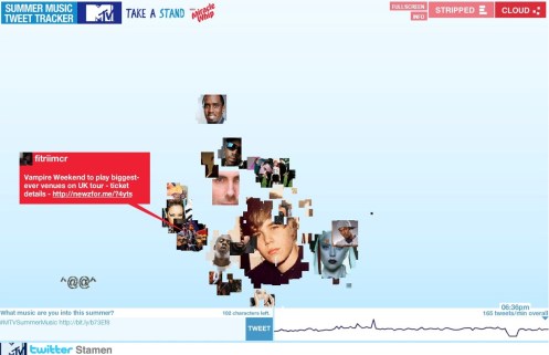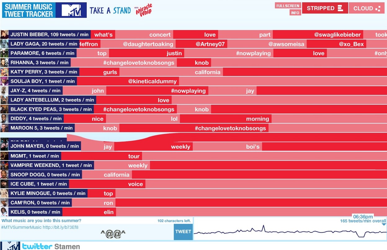 Our last encounter with this lovely piece of MTV goodness (it was the bane of our existence, I recall) was during the live 2010 MTV Movie Awards when Rain topped the board and stayed somewhere on it for quite a while (at the expense of our Twitters, which we burned out in the process). As we understand it, this is to cover summer music in general, what Tweeters are talking about at the moment.