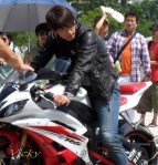 Rain on the Macao Runaway set with Ji-Woo’s vehicles.  Haha.  Just say it, Ji-Woo, with all of that power between your legs… “How ya like me now?” 😀