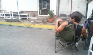 This is a picture of Ji Hoon hyung‘s back in the Philippines..^^ This picture shows him taking a rest on the set where there were no trees to offer us shade..!!