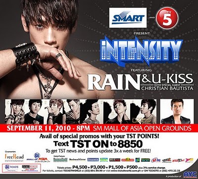 Aside from Rain, Intensity features U-Kiss and special guest Christian Bautista on Sept. 11 at the SM Mall of Asia Open Grounds.