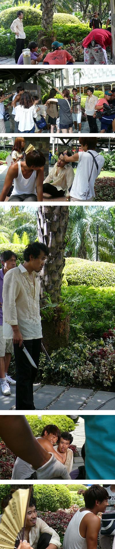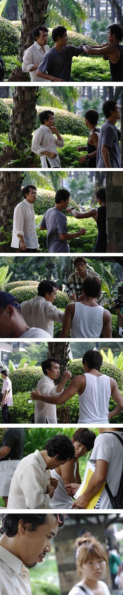 Watch it, Ji-Woo! Dude’s got two Bowie knives!! Filming Runaway, from cast mate Jo Sang Ki’s mini-homepage. I do believe this was outside Chateau at Greenbelt 4. (source site: Rain Europe)