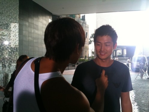 Let me be your stylist, buddy… more of Rain giving Jung-Jin a helping hand back on the Runaway set in the Philippines.  — ^@@^ (images: rainjtunecamp @Twitter)