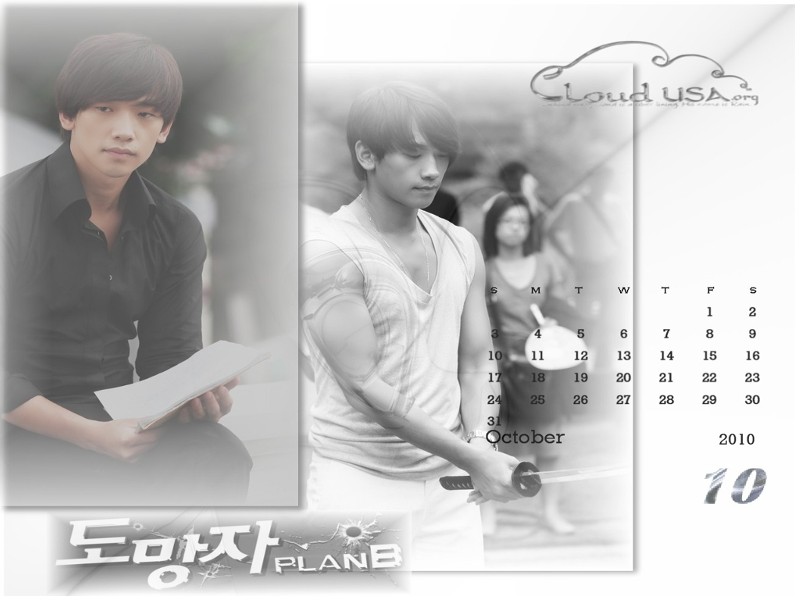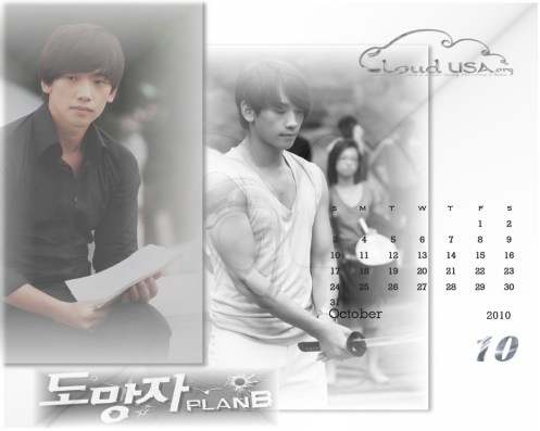 In celebration of the fast approaching premiere of Rain’s new drama, The Fugitive: Plan B, we’re releasing our calendar wallpaper post five days earlier than usual. And why not? This wave we’re all riding in anticipation of Runaway/Fugitive is so exciting. What an amazing feeling.