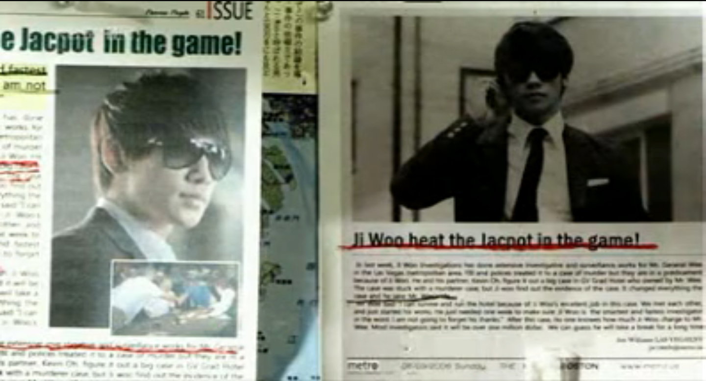 Yeah. You shoulda seen my face when I saw it. By the way, KBS, that headline in the newspaper should say, “Ji-Woo HITS the JACKPOT in the game.”