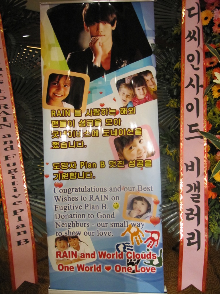 We also sent a congratulatory garland in the name of RAIN’s world fans at the 도망자 Plan B press conference on 27 September, which was placed side by side with our banner.