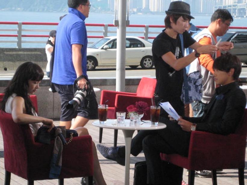 Rain and NaYoung on the Runaway set in Busan, S. Korea. — ^@@^ (images: B4 @DC Rain Gallery)