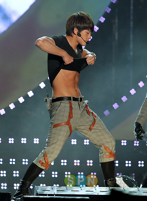 Rain check: The Golden Boy with the golden abs.