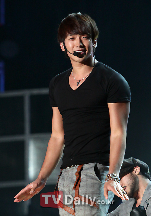 Rain check: The Golden Boy with the golden abs.