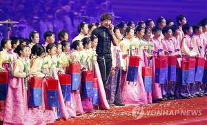 His powerful performance and black-colored clothes produced a deep impression on participating athletes from 45 Asian countries and more than 30,000 audiences. In particular, he brought Asian people together, singing Friends.