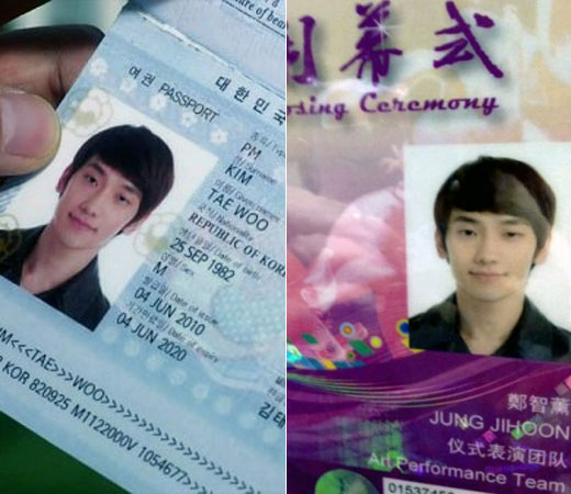 On the left… JiWoo’s passport on The Fugitive: Plan B. On the right, supposedly… Rain’s 16th Asian Games Closing Ceremony ID/pass, as we understand it. The passport’s for sure, but we have no way of confirming the Asiad ID just now. Still…