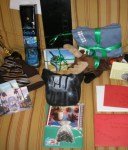 that afghan is gorgeous and looks like a lot of work was put into it. the lables look really smart and the wrapping paper too. looks like an array of gifts that’ll keep him grinning for awhile. i’m grinning and it’s not even my box, hahahha