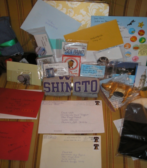 Not only are U.S. fans and states (including Puerto Rico) represented, but world fans as well. There are gifts and/or holiday greetings from Australia, France, and Turkey, for instance. Rain already knows that his fandom stretches far and wide across the planet; this Christmas, the proof of that will definitely be in the pudding. In addition to the cards and gifts, we’ve included a handsome black binder that’s very shiny and very elegant, and contains Cloud USA community member lists (forum, blog subscribers, upcoming meet-up groups, etc.) and holiday emails all inside of it, printed out on white linen paper for him. Taking a picture of every single thing by itself would have taken forever, so we didn’t, particularly the binder contents and emails (which made no sense anyway because everyone has a copy of their own email). Getting the box properly packed and out on time was the most important thing, as we didn’t know what kind of delays it might face in getting to S.Korea.