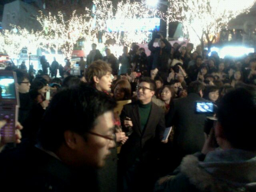 [fan cams/images/tweets/posts] Rain shows up near Hongik University with NO warning. Haha!
