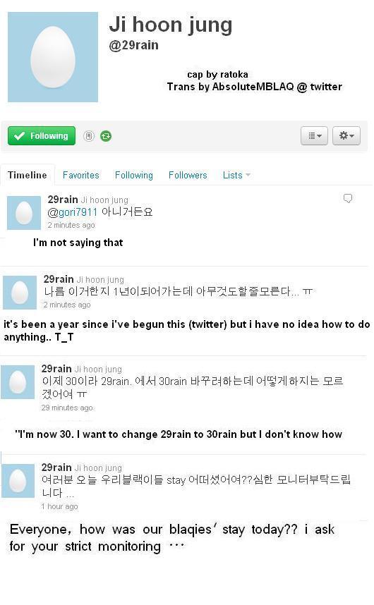 Now I know JiHoon’s been getting some R&R, with this tweeting roll he’s been on the last few days (he seems to tweet the most when he’s somewhat relaxed…)! Thank heavens! Forgive me if I don’t throw up every single tweet, though, ladies (I’m of a mind to dedicate posts to when he says something after a long time, or when he says something of real importance, poor guy would probably tweet more and not hold himself back so much if he didn’t know that every belch and fart he made would be spread across the Internet a gazillion times ROFL).
