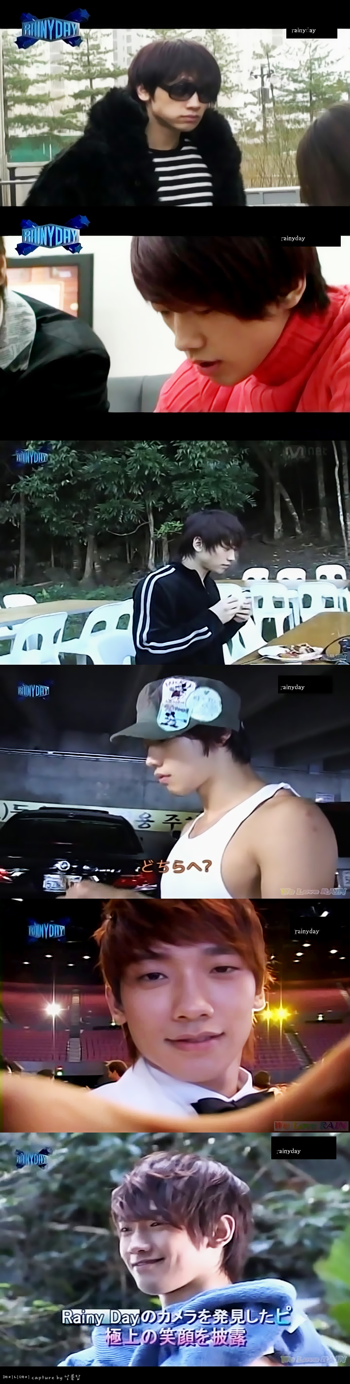 I’m not sure what RAINY DAY Season 1 episode this is (I’m sure one of you can tell me!), but I do recognize that it was when Rain was in Australia as the new spokesmodel for Nature Republic, and shooting all of those new NR CFs in those beautiful, ancient forests. (Oh, and the CF where he wins an award). — ^@@^ (caps: 뤠인이진리 @The Cloud)