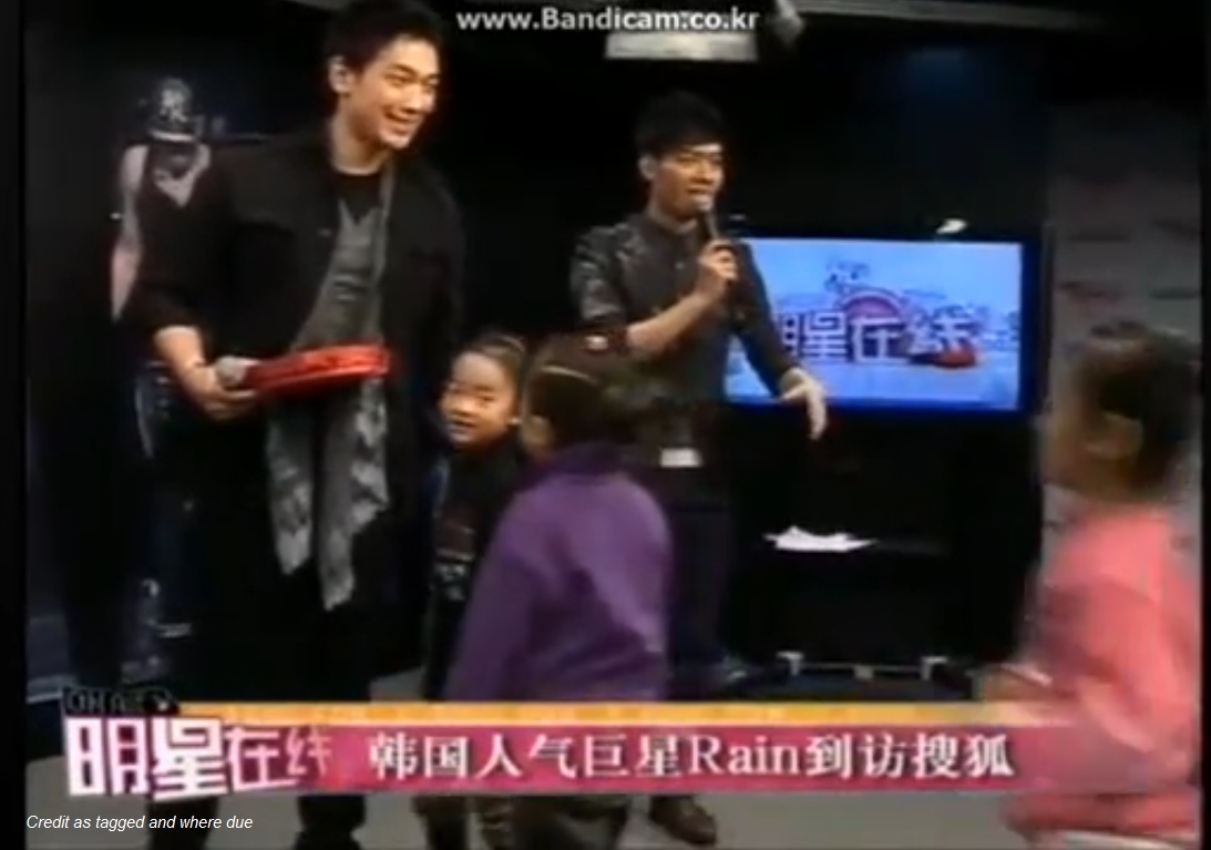 Rain has admitted on several interviews that he really wants daughters when the time comes for him to marry and add to his family. I’m thinking he wishes that was sooner rather than later, as the pictures from his recent interview from China show him enjoying their company, he was interviewed concerning his Korea-China Youth Environment Protection ambassadorship.