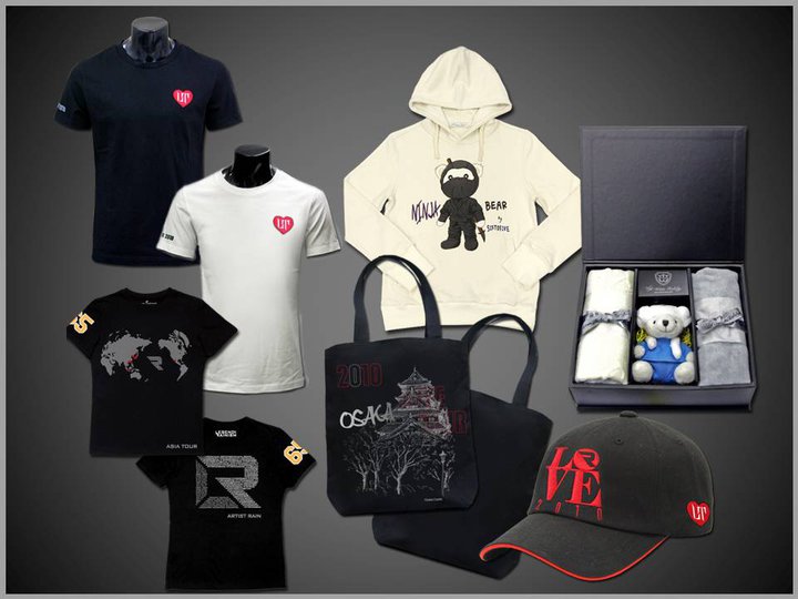 Remember, back in mid-February, when J.Tune Creative/DRAFTWORKS announced that Rain’s still very much sought-after Legend of Rainism Tour and Rain Loves Japan/ZEPP Tour merchandise had been made available for purchase at open markets on the Internet? And how frustrated we were because 99% of everything was in Hangeul?