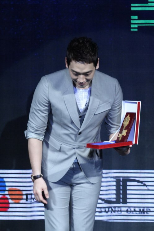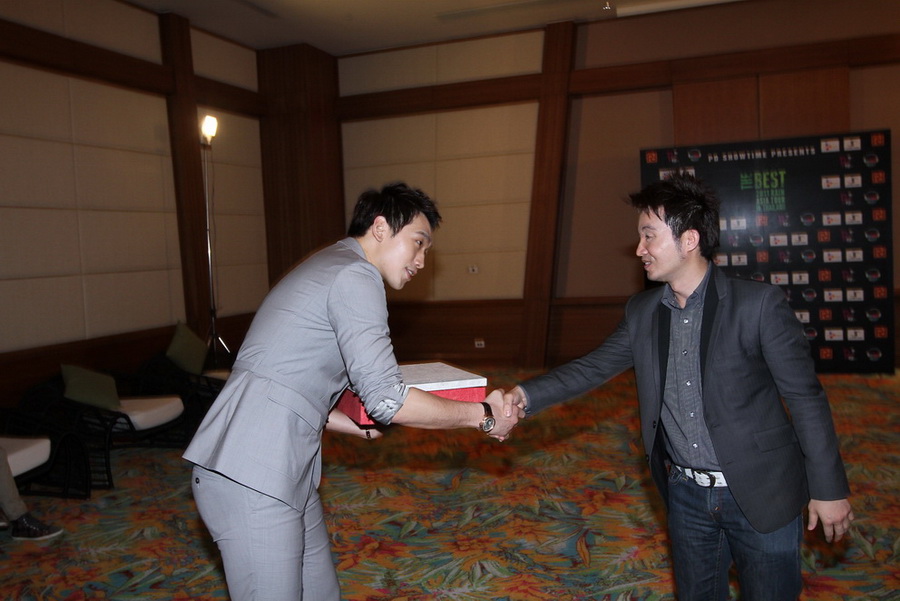 Rain at his The BEST 2011 Rain concert press con in Thailand. I have yet to run into a write-up that mentions the “gift” that Rain received, but I think it’s quite obvious that he is being honored by “getting the Key to the City” so to speak. (images: talkertain.com / source site: The Cloud)