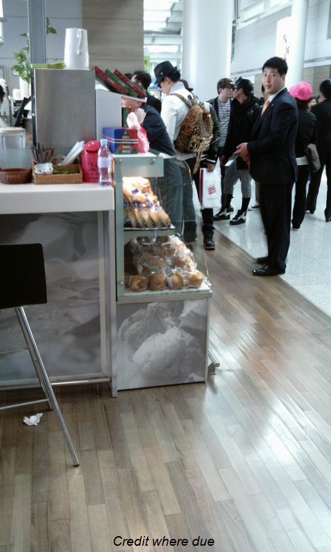 The picture shows Rain buying a cup of coffee at a coffee shop in the Incheon International Airport on March 25, 2011.