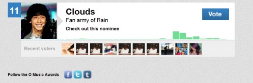 TIME and Rain should take precedence in my opinion to the MTV Cloud fan army poll. And I really don’t see anyone shifting gears away from TIME anyway. Rain really deserves that one and Clouds really want it for him, over all else.