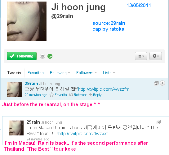 Rain look so cute! I wish I could be at one of his concerts! It makes me happy when he tweets in english!