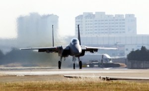 This is the second such picture Yi Woongkyu has put up these past months… the first one, shown below, being an F-15 Eagle either touching down or taking off, which is the type of plane that Rain’s character’s special F-15 “Red Muffler” is based on.