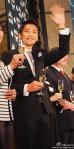 Don’t you just love to see him in a well-fitting suit? He looks so damned good! He’s wearing what I call his public smile. His “my mouth is smiling but my eyes say I don’t neccessarily want to be here” smile. Poor thing is probably tired as hell, and yet still looking incredible. How does he do it? If I’d been flying all over the world and back for the past few months, I’d look like death warmed over. The man must have some frequent flyer miles out the wazoo, right??