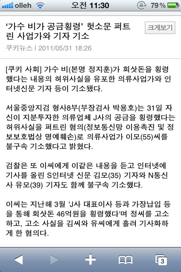 South Korean authorities have indicted ‘Lee’ (55), a businessman who works on clothes, ‘Kim’ (35) and ‘Yu’ (39) who work as investigative reporters for internet newspaper ‘S’ and news agency ‘N’, respectively, on charges of spreading false reports about Rain.