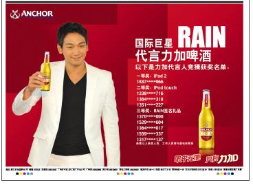 [article] Rain signs with Hainan Asia Pacific Brewery, a part of Heineken International.