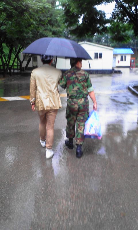 Private ‘Heo Seung Bum’ has got nothing to envy in this world since there is Rain to the left of him while he has a big plastic bag full of snacks in his right hand…keke..