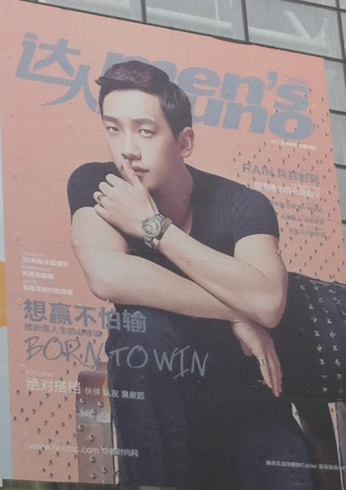 our HANDSOME man rain just all over the world he sure bring the traffic spread ahahahah dran i am impressive see that BIG POSTER HANGING JUST LIKE HE speaking into my mind rain gosh that look so intense MERCY!! o.O