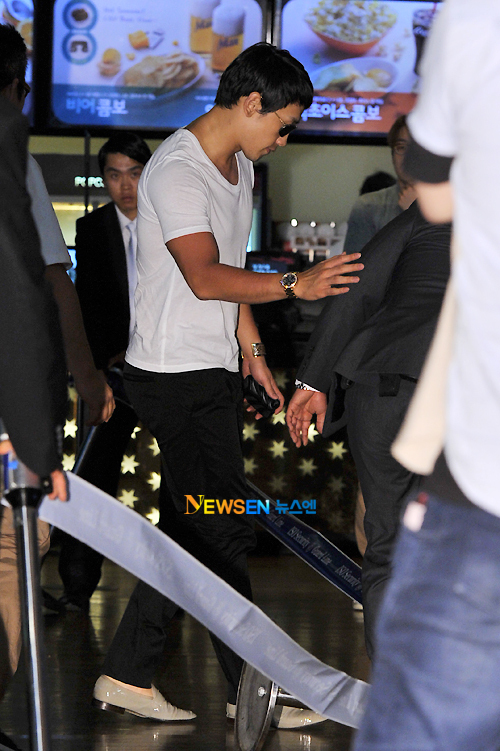[brief] Rain shows support for his 비상 [飛上] co-star at VIP movie premiere.