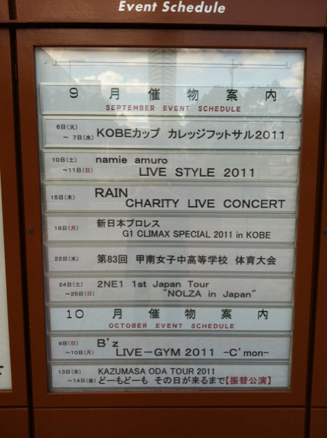 Looks like one of Rain’s live charity concerts, specifically the one on 9/15, will be held at World Memorial Hall in Kobe. Thanks to Hana in Japan for this information! I ran across this while browsing my blog links, and thought this might be of interest to English speakers in the area or our Japanese sisters who didn’t yet have the info. — Stephe ^@@^ 🙂 (Images credit: Hanamaru Rain Diary)