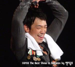 In anticipation of the “Seoul Woman” version coming up this weekend, let’s take a fresh, quick look at the most recent rendition of Rain’s “Busan Woman”, from Best Daejeon. You can tell by the way he encourages the fans to put in their city that the song is dear to him.