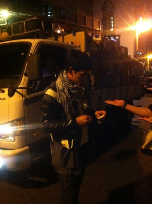 Mr.World Star couldn’t resist showing off his new car.. I thank him for working far into the night…We both made a bow to him ! keke.. What a lonely night …